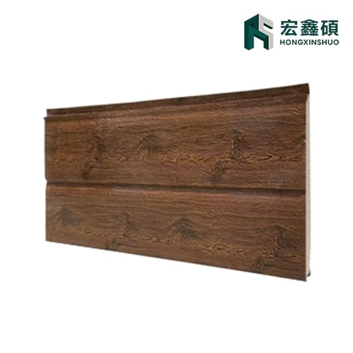 Hongxinshuo Insulated Sandwich Panel is manufactured with color-coated galvanized steel or aluminum sheets as facings, finished with a realistic wood-grain coating, and filled with an insulation core such as polyurethane, EPS or rock wool. Produced on a continuous laminating line, the panel integrates thermal insulation, fire protection, moisture resistance and decorative appearance in one product. It is widely used for external walls of houses, villas, light steel homes and commercial buildings, offering a high-efficiency alternative to traditional wood siding and wet-applied insulation systems.